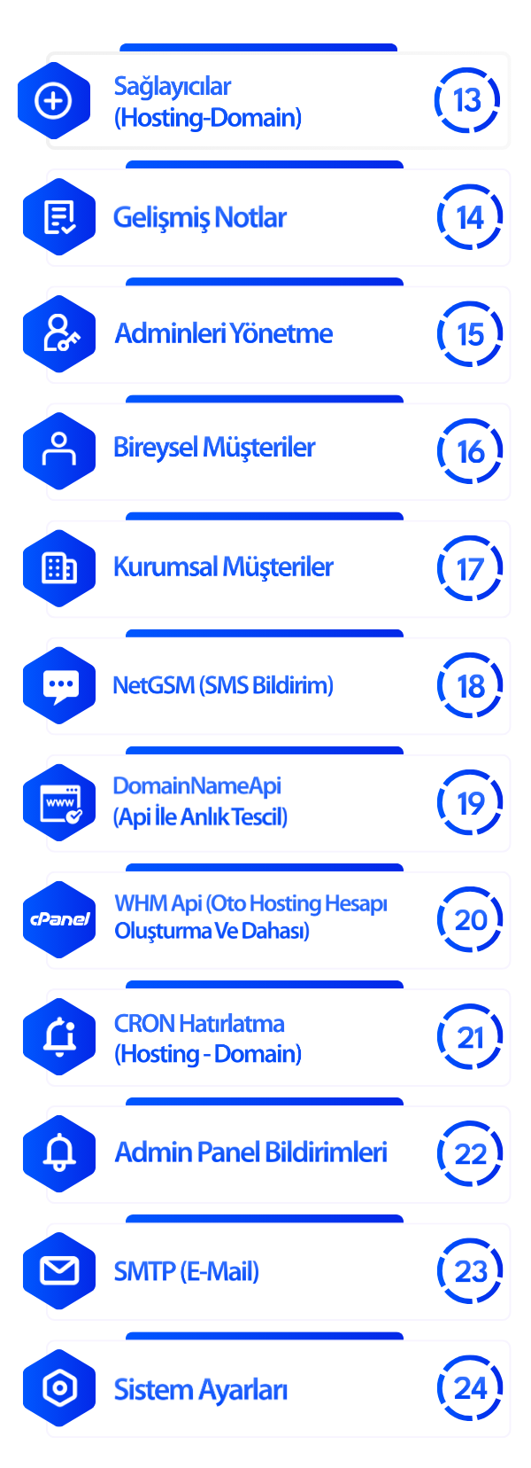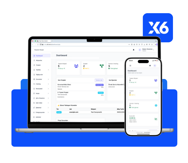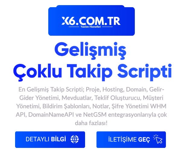 En Gelişmiş Takip Scripti; Proje, Hosting, Domain, Gelir-Gider Yönetimi, Mevduatlar, Teklif Oluşturucu, Müşteri Yönetimi, Bildirim Şablonları, Notlar, Şifre Yönetimi WHM API, DomainNameAPI ve NetGSM entegrasyonlarıyla çok daha fazlası!