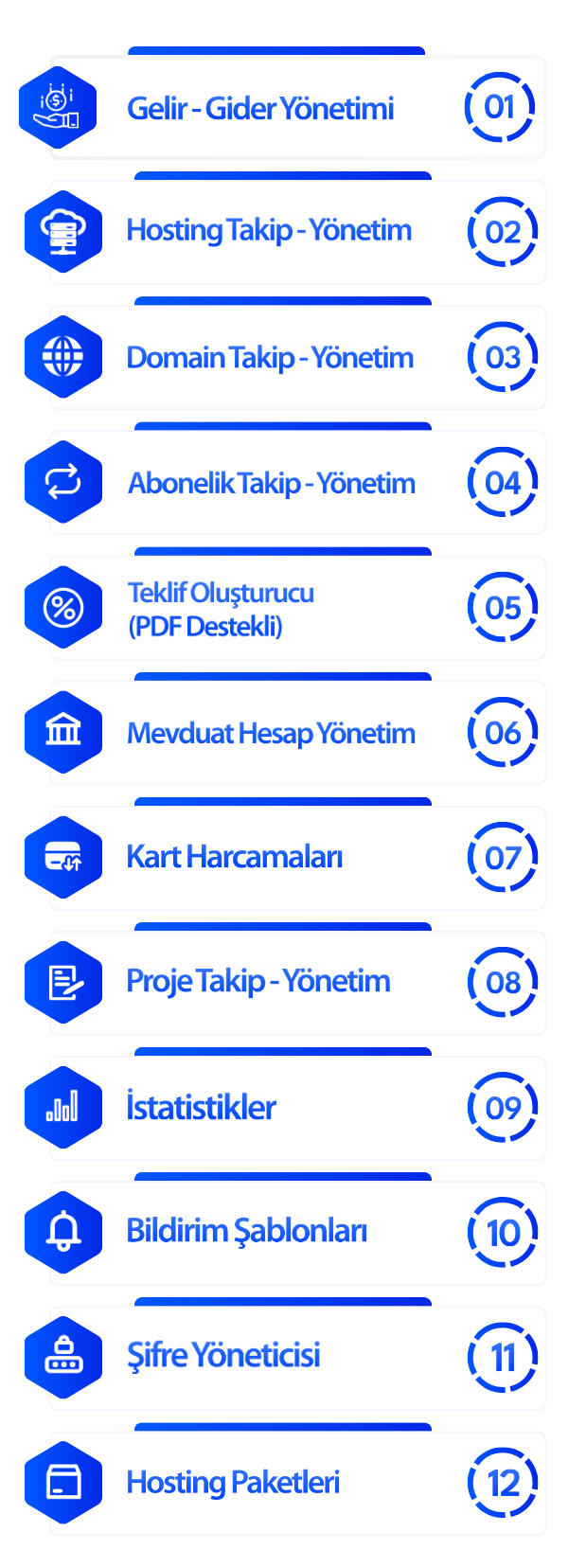 Çoklu Takip Scripti – Hosting, Domain, Proje, Gelir-Gider, Teklif ve Daha Fazlası